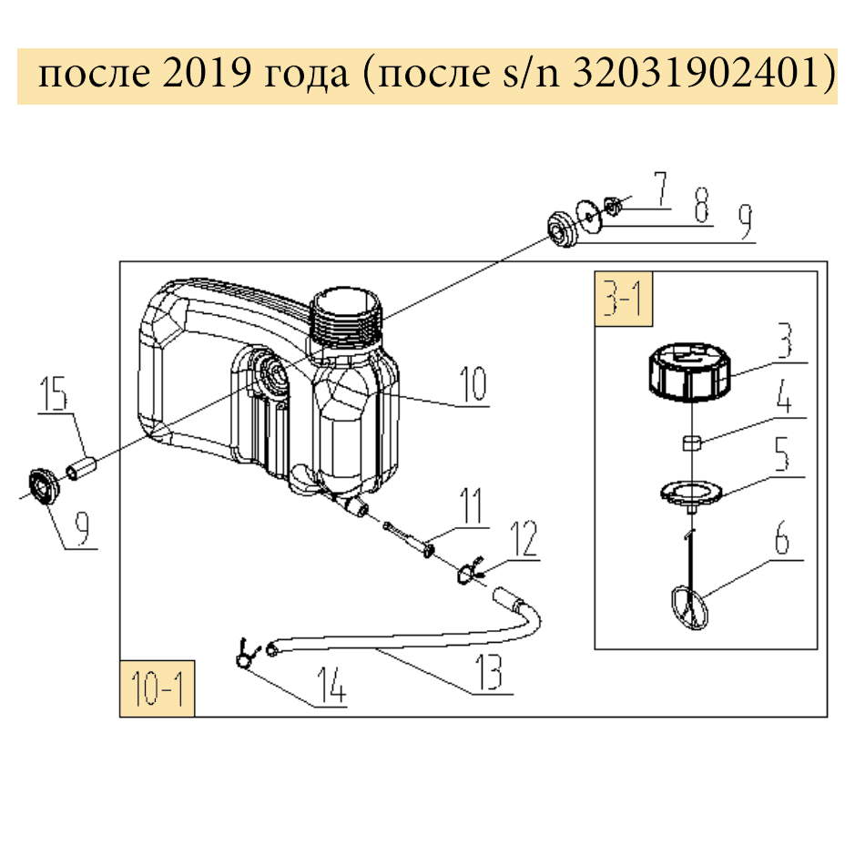 10 | БАК - ПРОБКА - ШЛАНГ | Запчасти для газонокосилки чемпион | LM4627 после 2019 года | после номера s/n 32031902401 | Поставка по России | Сервис - Ремонт