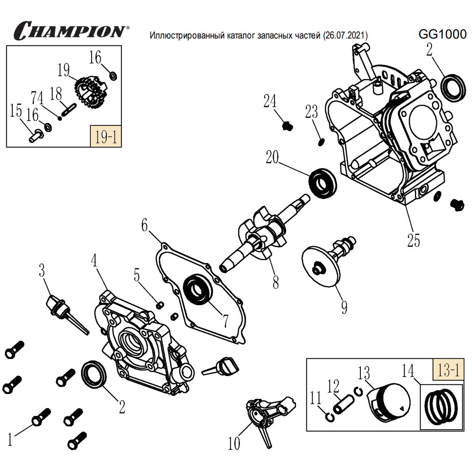 6 | Поршень - Шатун - Коленвал - Распредвал | Запчасти для генератора чемпион | GG1000 | Сервис - Магазин |