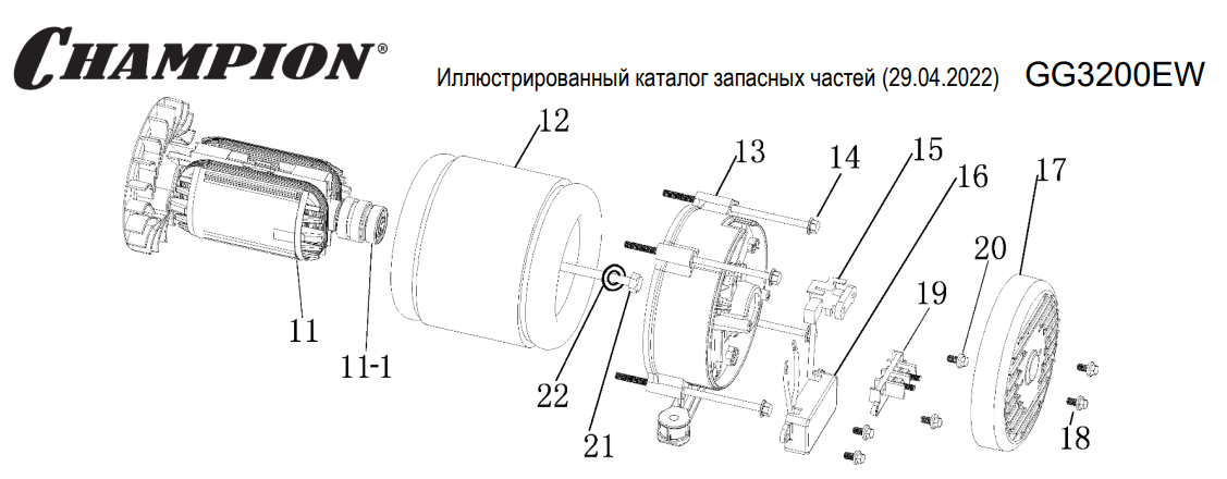 1 | Статор - Ротор - Блок AVR | Запчасти для генератора чемпион | GG3200EW | Сервис - Магазин |