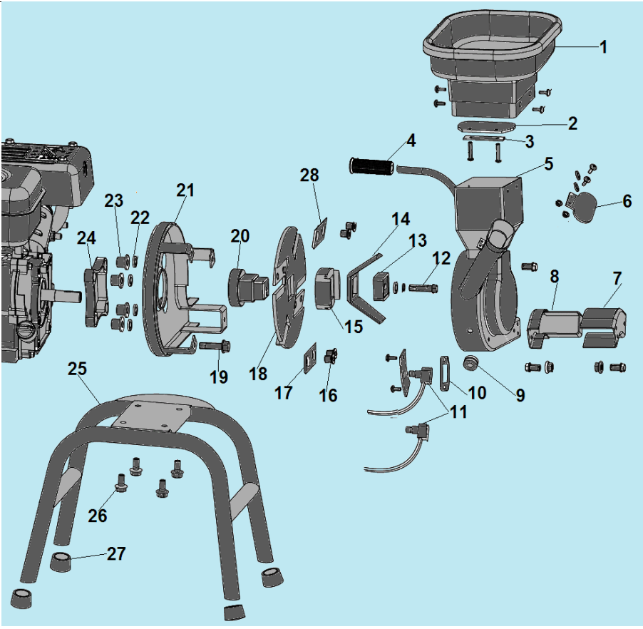 1 КОРПУС - НОЖИ - ВОРОНКА ИЗМЕЛЬЧИТЕЛЬ-ШРЕДЕР БЕНЗИНОВЫЙ CHAMPION SC2818 | ремонт | в СПБ