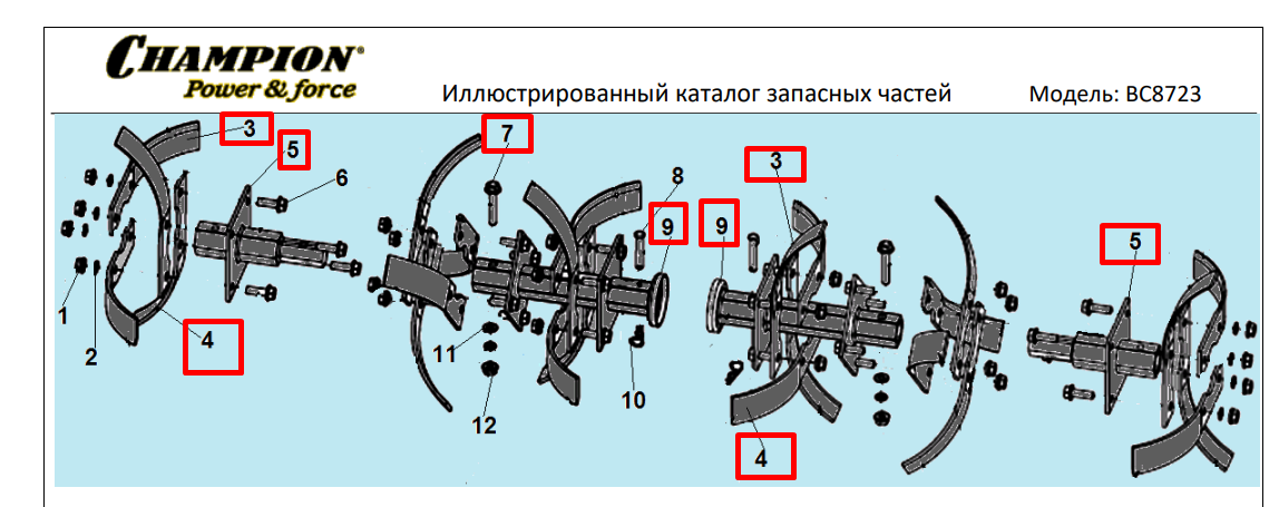 8 | ФРЕЗЫ | Запчасти для культиватора, мотоблока чемпион | BC8723 | Поставка по России |