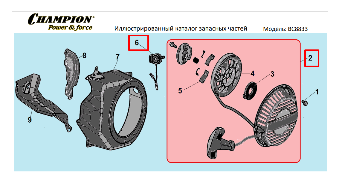 10 | СТАРТЕР | Запчасти для культиватора, мотоблока чемпион | BC8833 | Поставка по России |