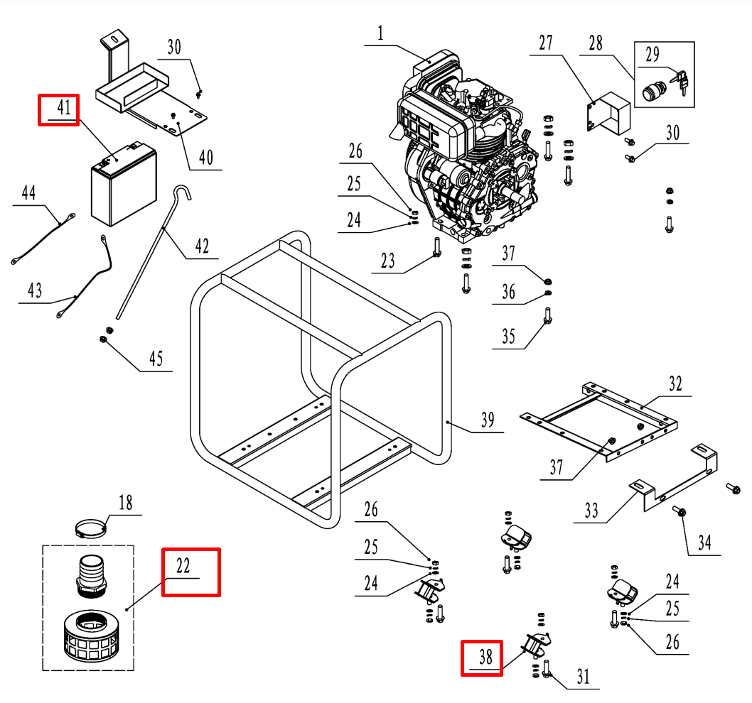2 | РАМА | Запчасти для мотопомпы чемпион | GTP81E после 2019 года | (после s/n 23101900001 | Поставка по России | Магазин-Сервис в СПБ |