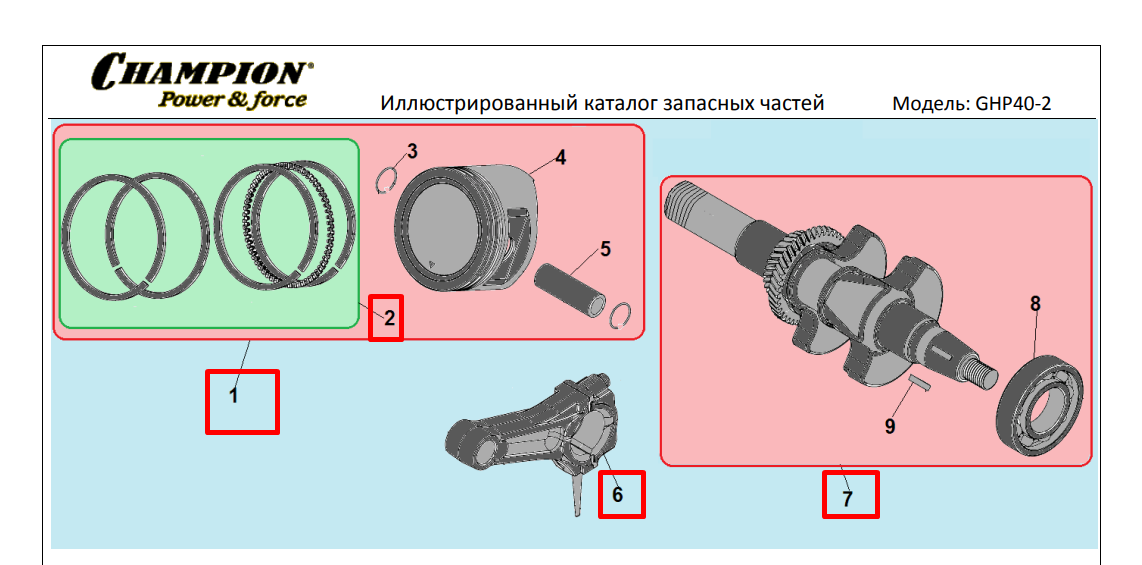 5 | ПОРШЕНЬ - КОЛЬЦА | Запчасти для мотопомпы чемпион | GHP40-2 до 2020 года обновленная |