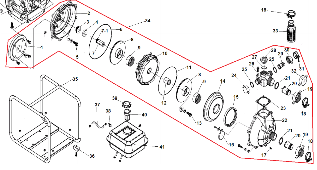1 КОРПУС - УЛИТКА -САЛЬНИК - КРЫЛЬЧАТКА МОТОПОМПА CHAMPION GHP40-2 | ремонт | в СПБ