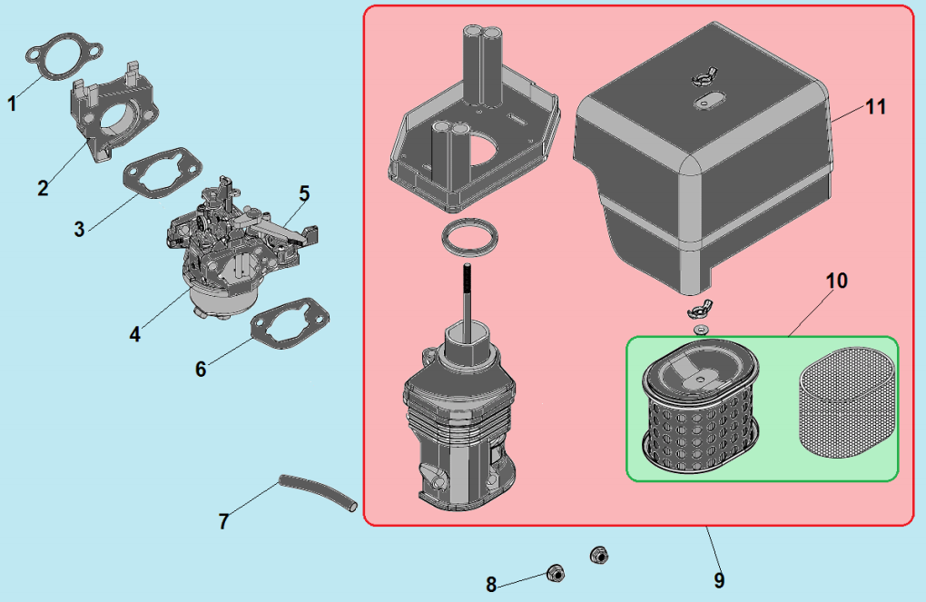 9 КАРБЮРАТОР - ВОЗДУШНЫЙ ФИЛЬТР МОТОПОМПА CHAMPION GTP80H | ремонт | в СПБ