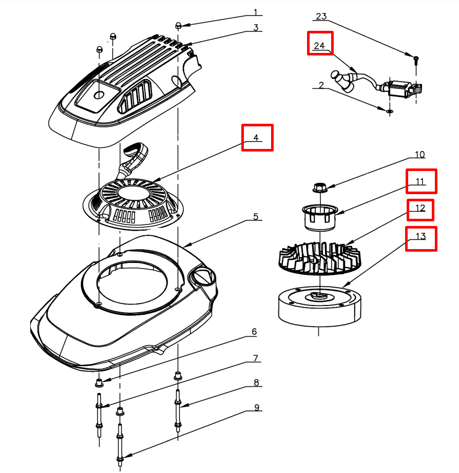 12 | СТАРТЕР - МАГНЕТО | Запчасти для уборочной чемпион | GS50100 после 2021 года | после s/n 37022100001 |