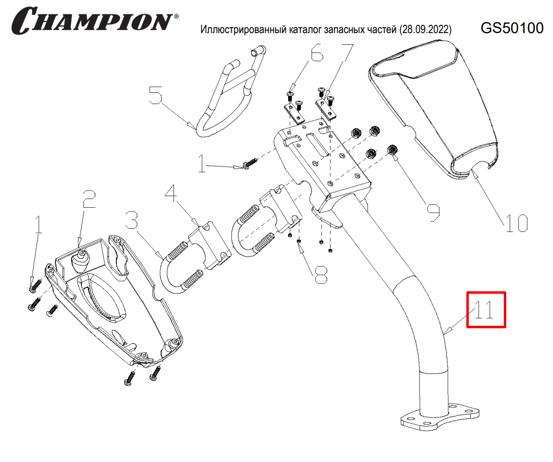 11 | МУСОРОСБОРНИК | Запчасти для уборочной чемпион | GS50100 после 2021 года | после s/n 37022100001 |