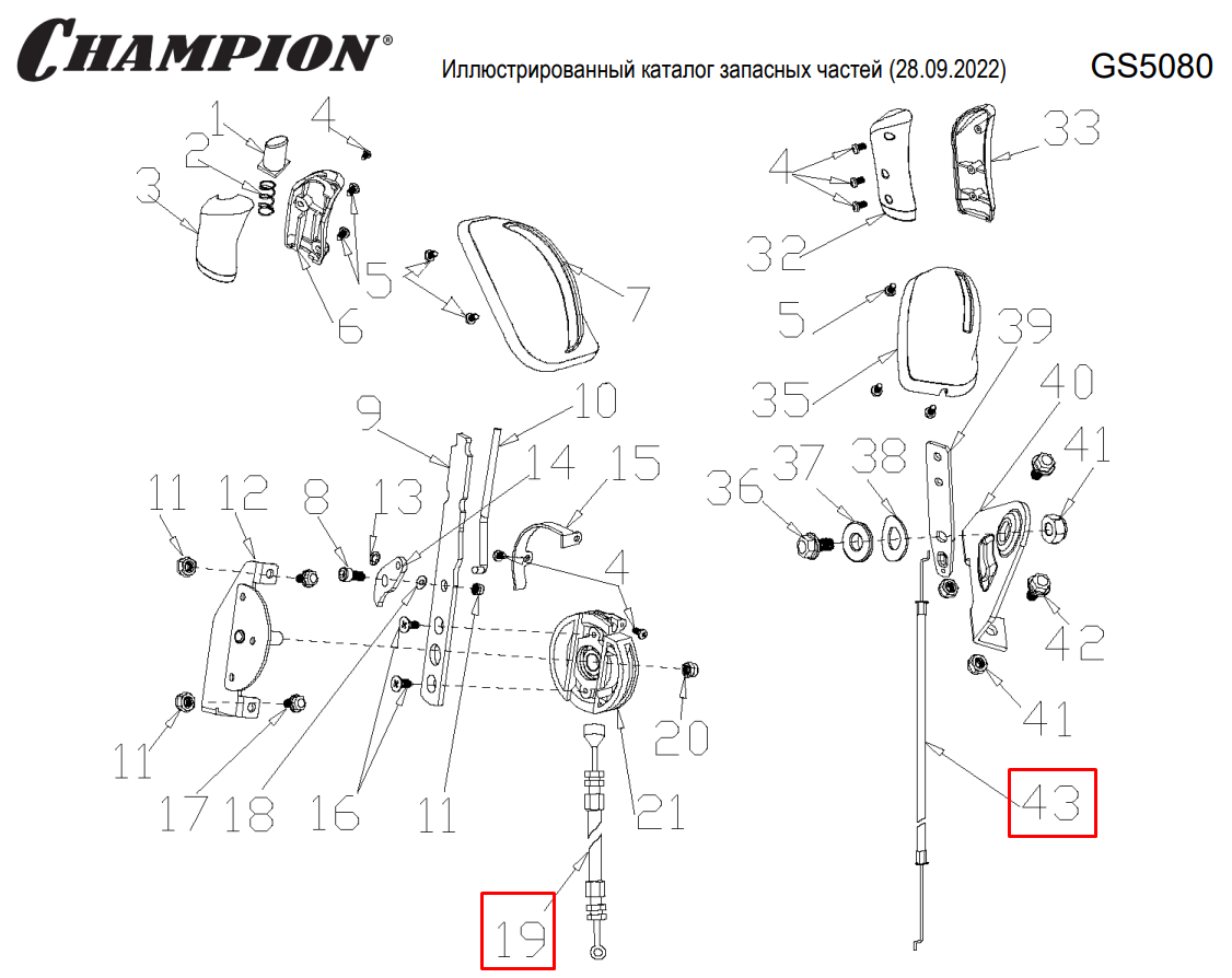 1 | ТРОСА - РУЧКА | Запчасти для уборочной чемпион | GS5080 после 2021 года | после s/n 37012000001 |