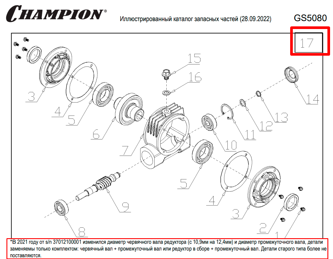 17 | ГЛУШИТЕЛЬ | Запчасти для уборочной чемпион | GS5080 после 2021 года | после s/n 37012000001 |