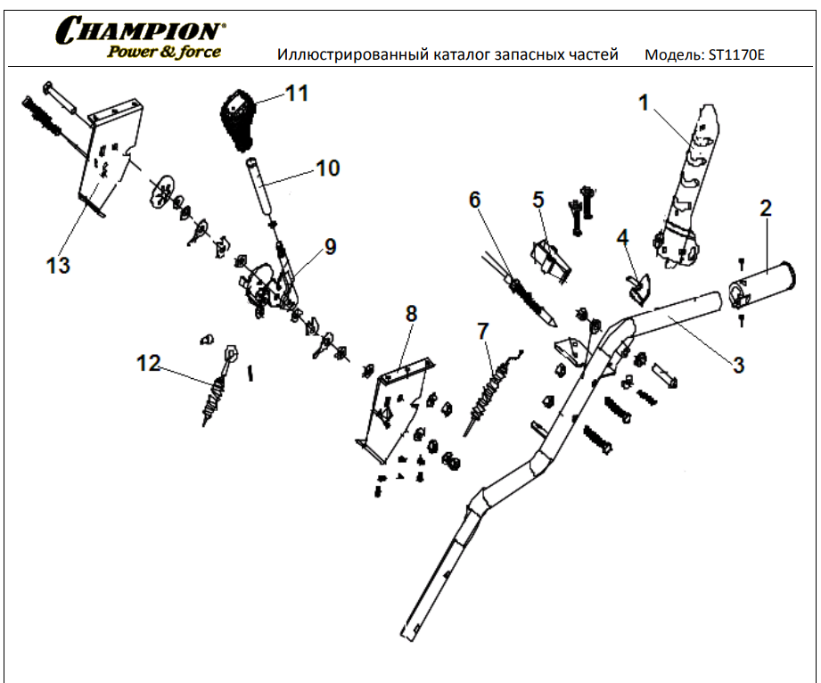 1 ДЕТАЛИ УПРАВЛЕНИЯ | СНЕГОУБОРЩИК CHAMPION ST1170E |Запчасти по России | СПБ