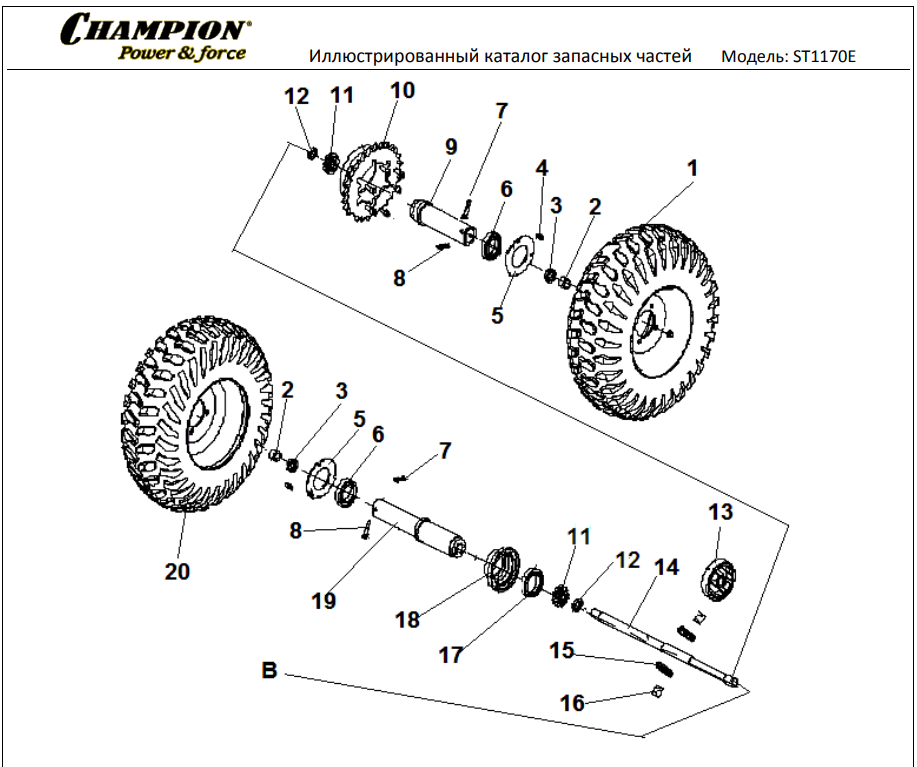 20 ТЯГИ | СНЕГОУБОРЩИК CHAMPION ST1170E |Запчасти по России | СПБ