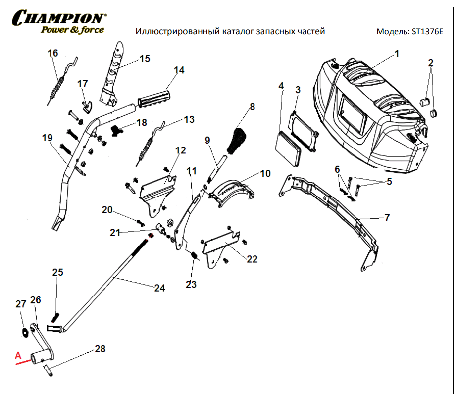 1 ДЕТАЛИ УПРАВЛЕНИЯ | СНЕГОУБОРЩИК CHAMPION ST1376E |Запчасти по России | СПБ