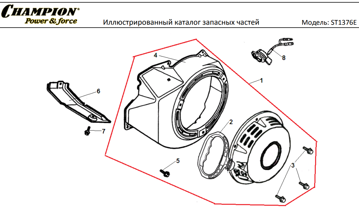 Главная страница > Каталог запчастей | Champion | запчасти Чемпион по России и СПБ > Каталог запчастей | Снегоуборщики | Чемпион запчасти | Champion по России и СПБ > СНЕГОУБОРЩИК CHAMPION ST1376E |Запчасти по России | СПБ