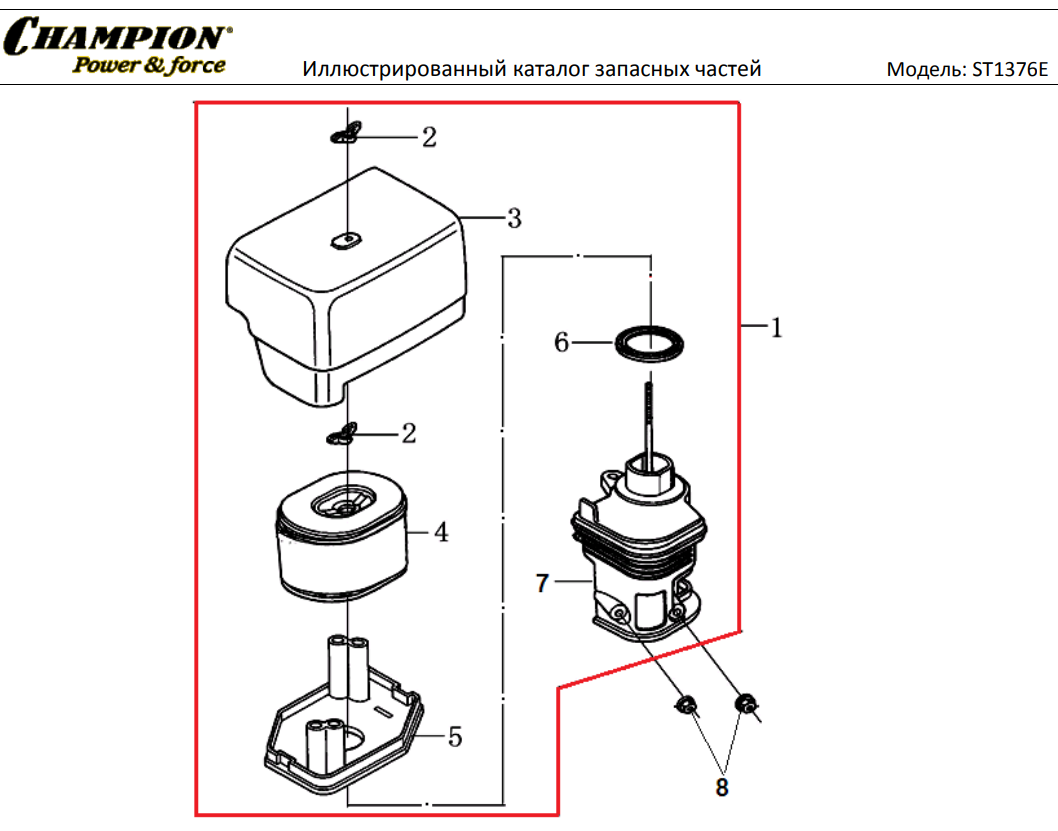 Главная страница > Каталог запчастей | Champion | запчасти Чемпион по России и СПБ > Каталог запчастей | Снегоуборщики | Чемпион запчасти | Champion по России и СПБ > СНЕГОУБОРЩИК CHAMPION ST1376E |Запчасти по России | СПБ
