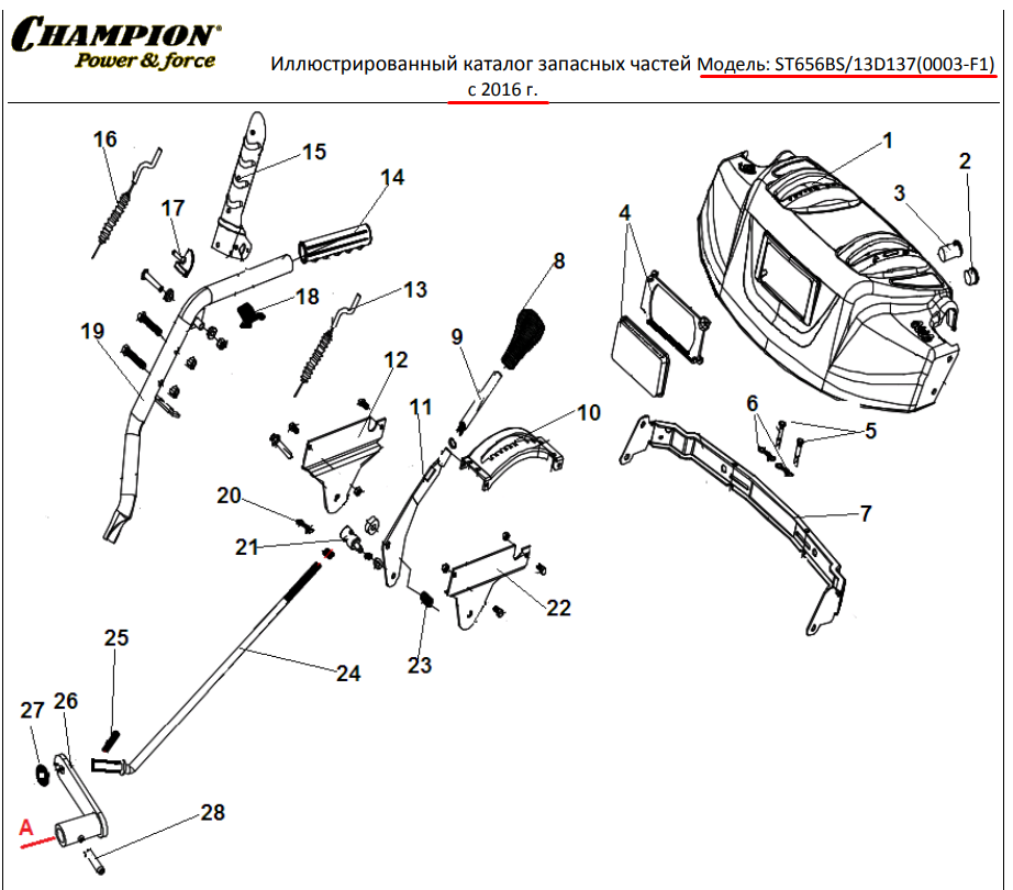 1 ДЕТАЛИ УПРАВЛЕНИЯ | СНЕГОУБОРЩИК CHAMPION ST656BS |Запчасти по России | СПБ с Двигателем BRIGGS & STRATTON
