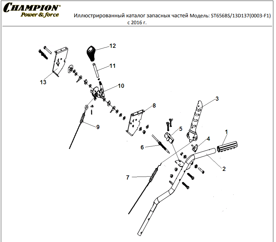 1 ДЕТАЛИ УПРАВЛЕНИЯ | СНЕГОУБОРЩИК CHAMPION ST656BS |Запчасти по России | СПБ с Двигателем BRIGGS & STRATTON