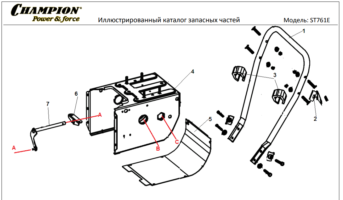 1 ДЕТАЛИ УПРАВЛЕНИЯ | СНЕГОУБОРЩИК CHAMPION ST761E |Запчасти по России | СПБ