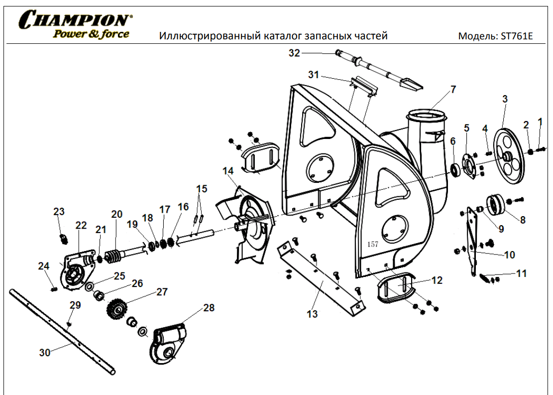 Главная страница > Каталог запчастей | Champion | запчасти Чемпион по России и СПБ > Каталог запчастей | Снегоуборщики | Чемпион запчасти | Champion по России и СПБ > СНЕГОУБОРЩИК CHAMPION ST761E | Запчасти по России | СПБ