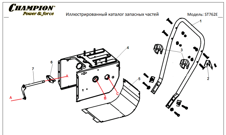 1 ДЕТАЛИ УПРАВЛЕНИЯ | СНЕГОУБОРЩИК CHAMPION ST762E |Запчасти по России | СПБ