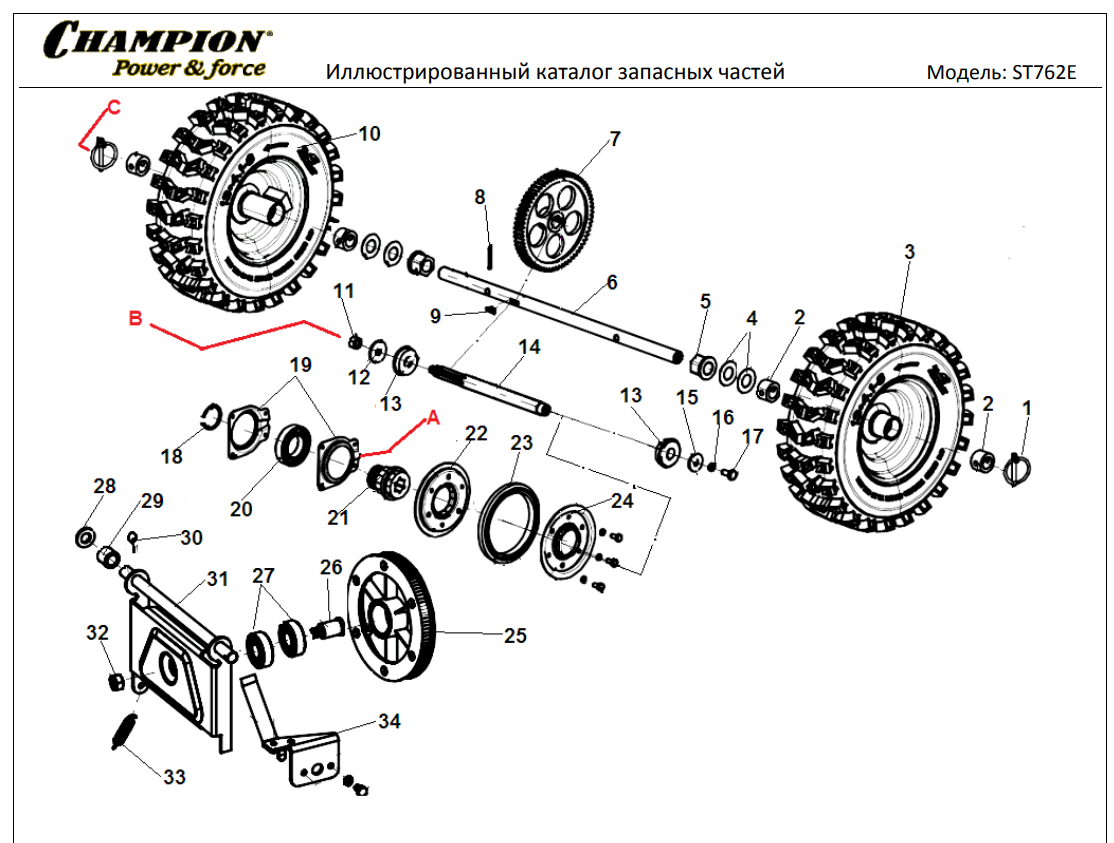 17 ТЯГИ | СНЕГОУБОРЩИК CHAMPION ST762E |Запчасти по России | СПБ