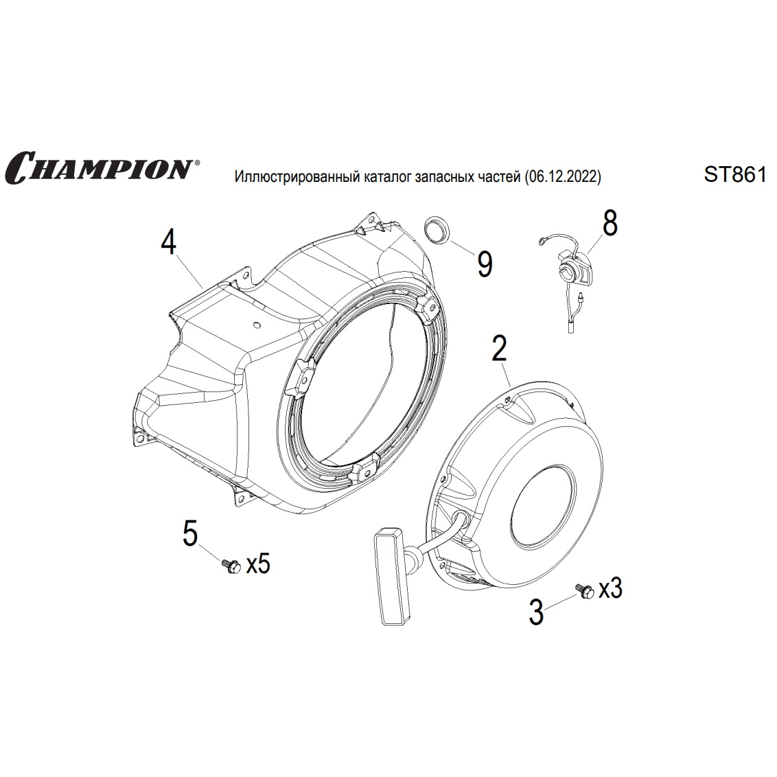 15 | СТАРТЕР | Запчасти для снегоуборщика чемпион ST861 | Магазин-Сервис в СПБ |