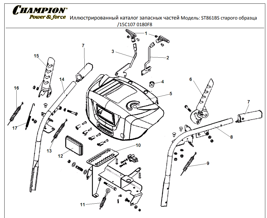 1 ДЕТАЛИ УПРАВЛЕНИЯ | СНЕГОУБОРЩИК CHAMPION ST861BS | Старого образца до 2015 |Запчасти по России | СПБ