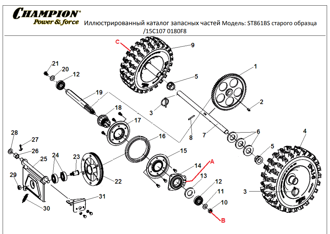 4 КОЛЕСА - ШЕСТЕРНИ | СНЕГОУБОРЩИК CHAMPION ST861BS | Старого образца до 2015 |Запчасти по России | СПБ
