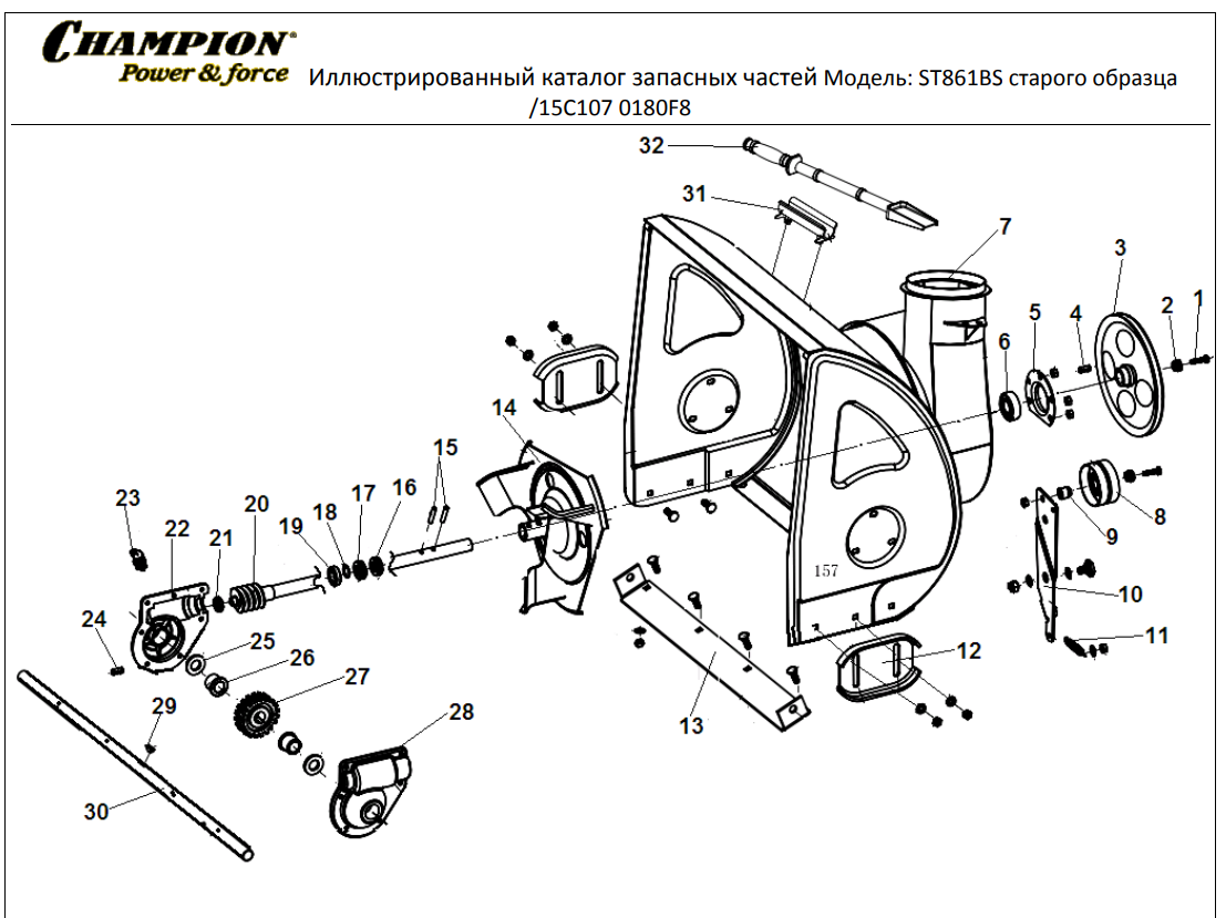 Главная страница > Каталог запчастей | Champion | запчасти Чемпион по России и СПБ > Каталог запчастей | Снегоуборщики | Чемпион запчасти | Champion по России и СПБ > СНЕГОУБОРЩИК CHAMPION ST861BS | Старого образца до 2015