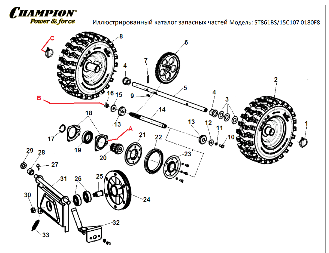 5 КОЛЕСА - ШЕСТЕРНИ |СНЕГОУБОРЩИК CHAMPION ST861BS |Запчасти по России | СПБ