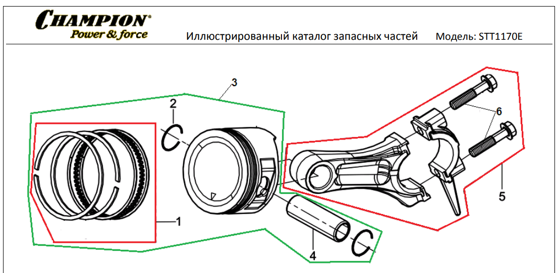 15 ПОРШЕНЬ -ЦИЛИНДР -КОЛЕНВАЛ- КОЛЬЦА | СНЕГОУБОРЩИК CHAMPION STT1170E |Запчасти по России | СПБ