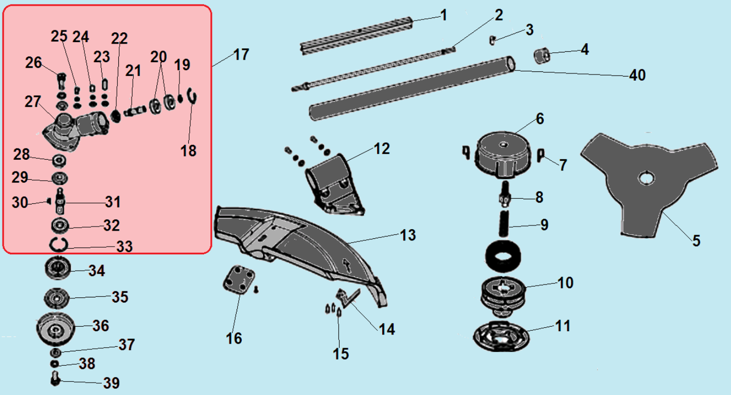 2 Штанга - Головка - Кожух - Головка - Редуктор ТРИММЕР ЭЛЕКТРИЧЕСКИЙ CHAMPION ET1204А | ремонт | в СПБ