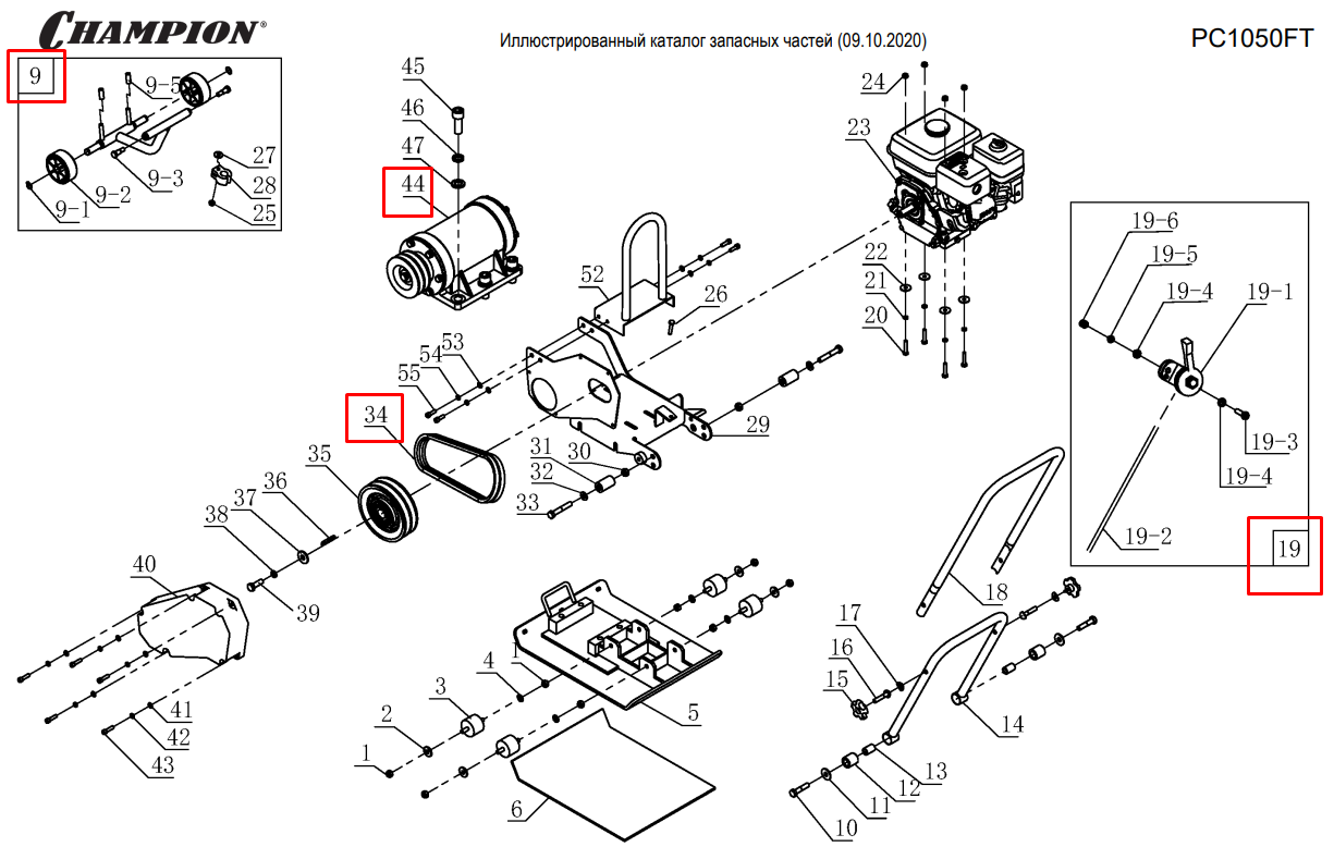 1 | РЕМЕНЬ - ШКИВ - СЦЕПЛЕНИЕ | Запчасти для виброплиты чемпион | PC1050FT | Поставка по России |