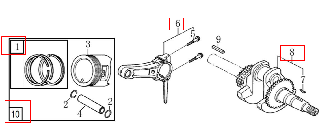 6 | ПОРШЕНЬ - КОЛЕНВАЛ- КОЛЬЦА | Запчасти для виброплиты чемпион | PC8742F | Поставка по России |